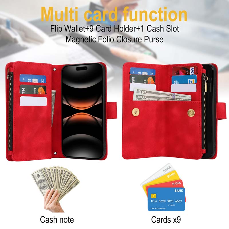 • 9 Card Slots Design: With 9 card slots, it can meet your daily card storage needs for IDs, driver's licenses, credit cards, membership cards, etc.