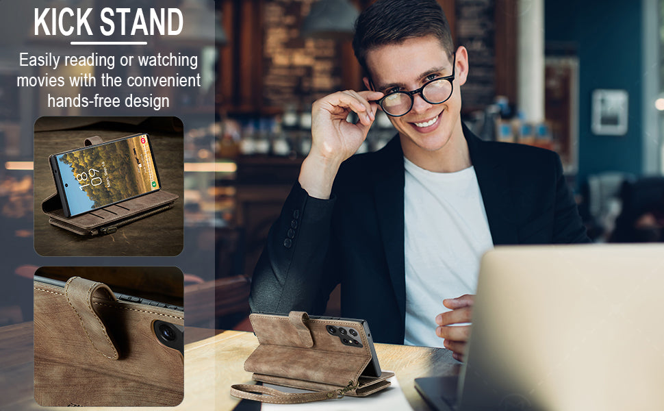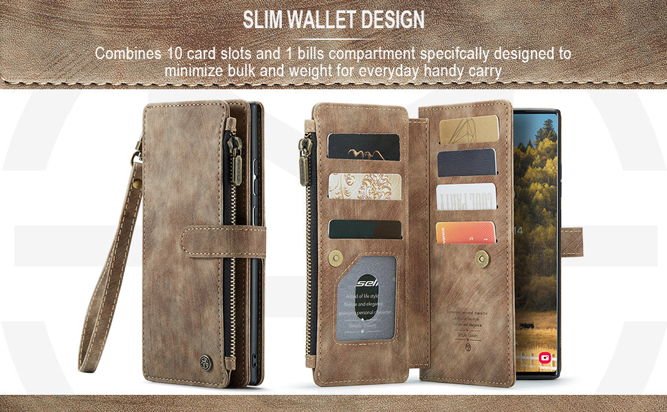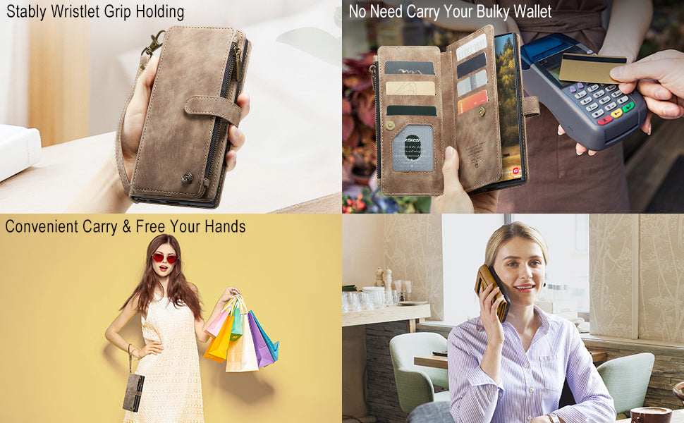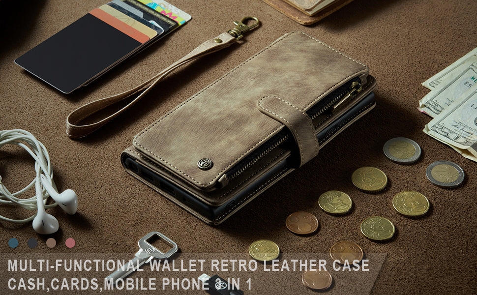 • CARD SLOTS AND VIEWING STAND: This wallet case includes 6 standard card slots + 1 ID card slot + 1 cash slot + 1 zipper wallet pocket (highly smooth zipper). You can carry your ID/ credit or debit cards/driver's license/ some cash and small notes without taking your bulky wallet. The hands-free viewing stand design allows your phone to stand independently and is perfect for video-chatting and movie-watching