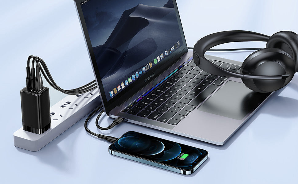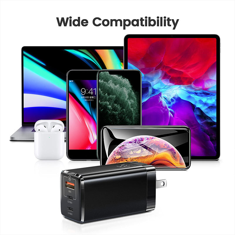- Intelligent Power Allocation: PD GaN charger cleverly distributes 65W of power between 3 devices when charging simultaneously and supports high-speed charging up to 65W when a single device is connected.