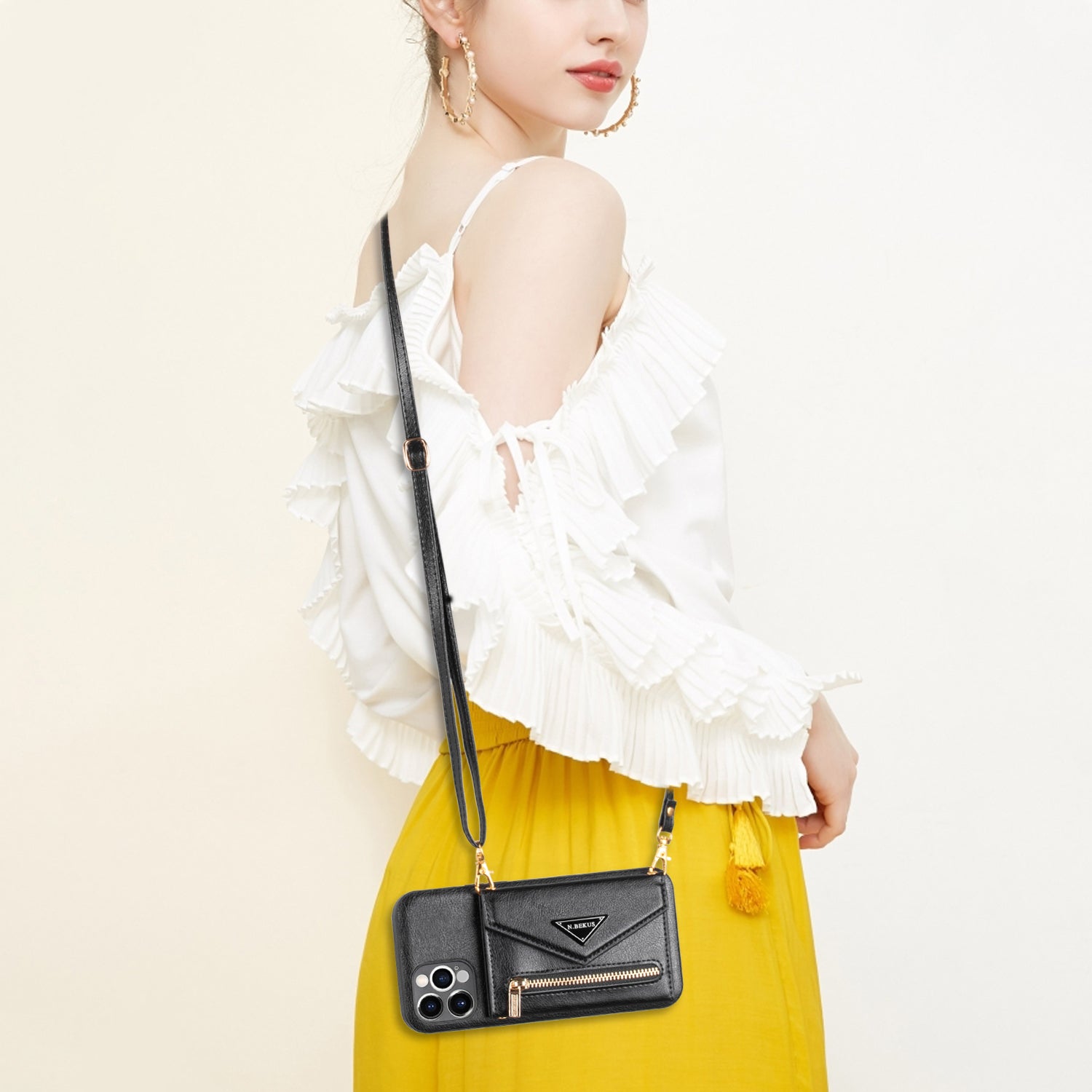 Casekis Crossbody Strap Leather Magnetic Wallet Phone Case Black