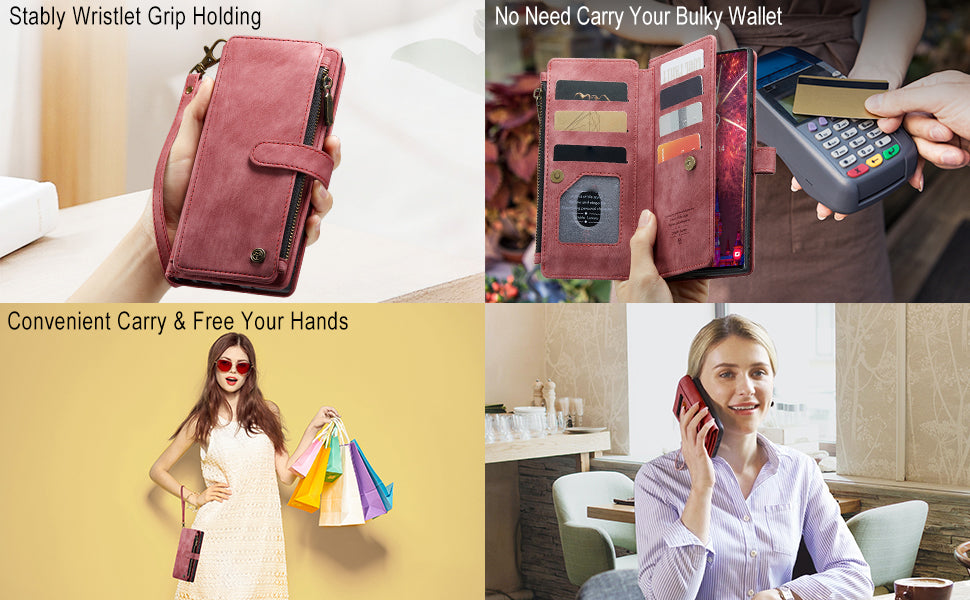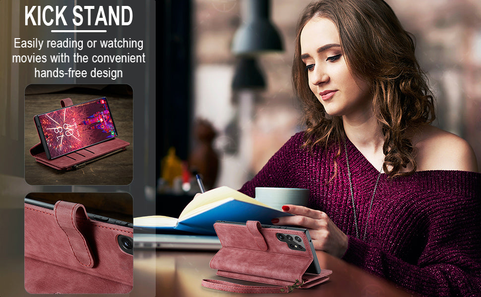 - CARD SLOTS AND VIEWING STAND: This wallet case includes 6 standard card slots + 1 ID card slot + 1 cash slot + 1 zipper wallet pocket (highly smooth zipper). You can carry your ID/ credit or debit cards/driver's license/ some cash and small notes without taking your bulky wallet. The hands-free viewing stand design allows your phone to stand independently and is perfect for video-chatting and movie-watching